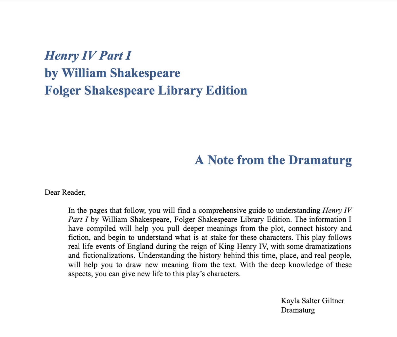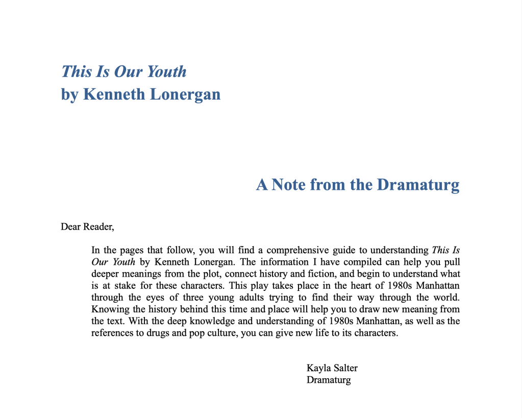 Dramaturgy Resume